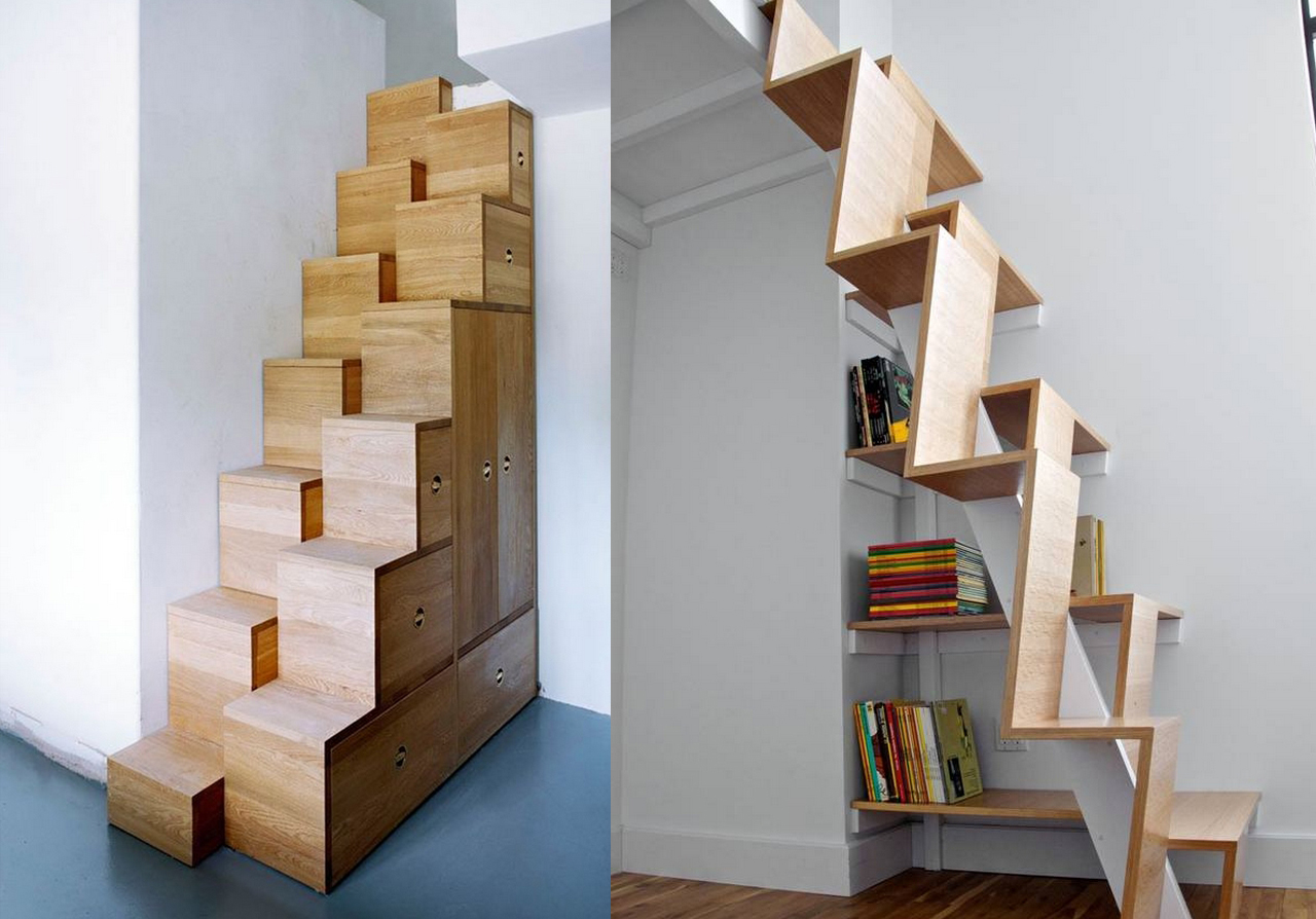 Mẫu cầu thang nhỏ gọn, không những không gặp hạn chế về kích thước, mà còn mang nhiều tính năng hữu ích cho người dùng. Mẫu thiết kế trên, kết hợp giữa cầu thang và kệ tủ, giúp người dùng có thể tận dụng và tiết kiệm tối đa không gian trong nhà.